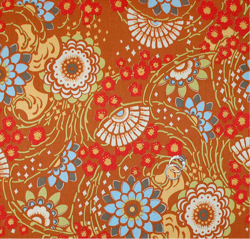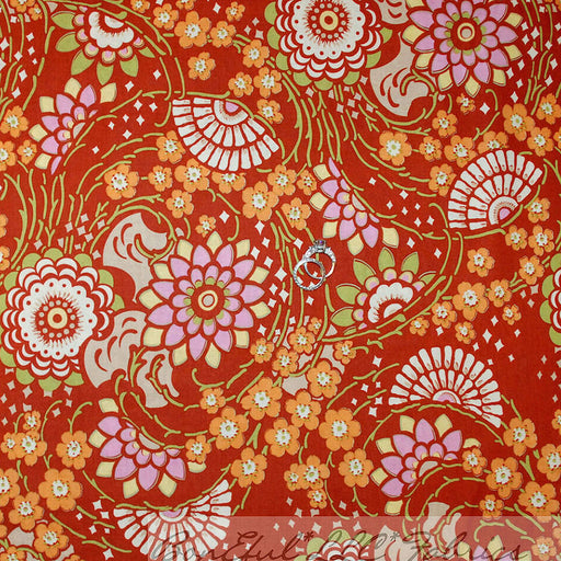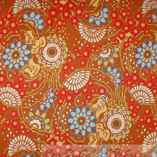 Cotton Fabric BTY Fan Brown Asian Flower Garden Amy Butler