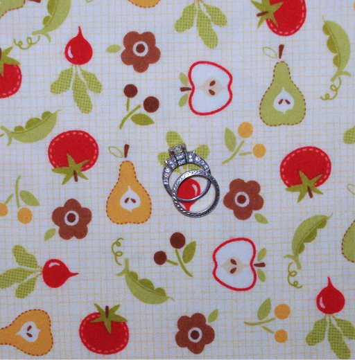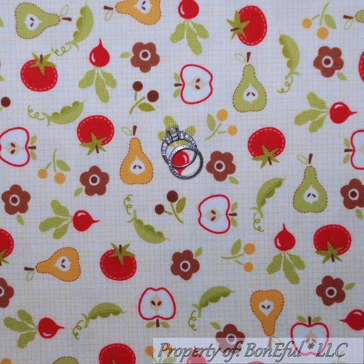 Flannel Fabric BTY Cream Green Garden Red Vegetable Fruit Check