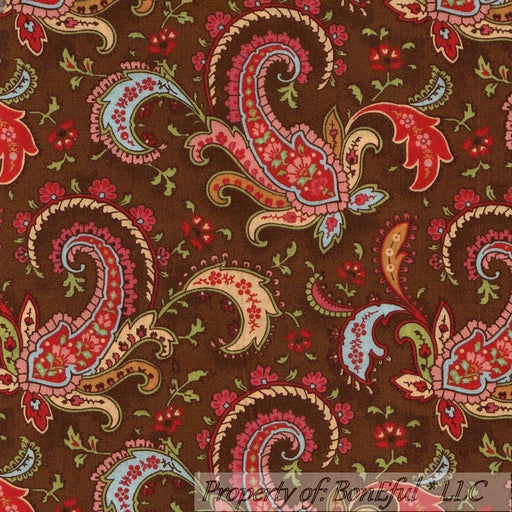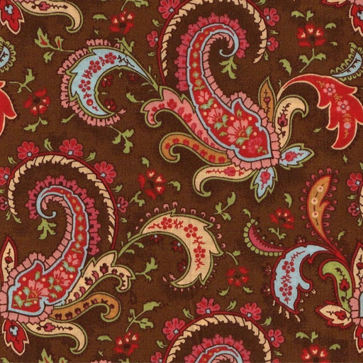 Cotton Fabric BTY Paisley Flower Brown Red Pink Orange Fall Harvest