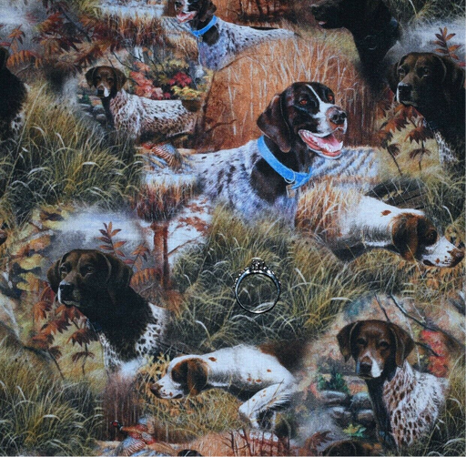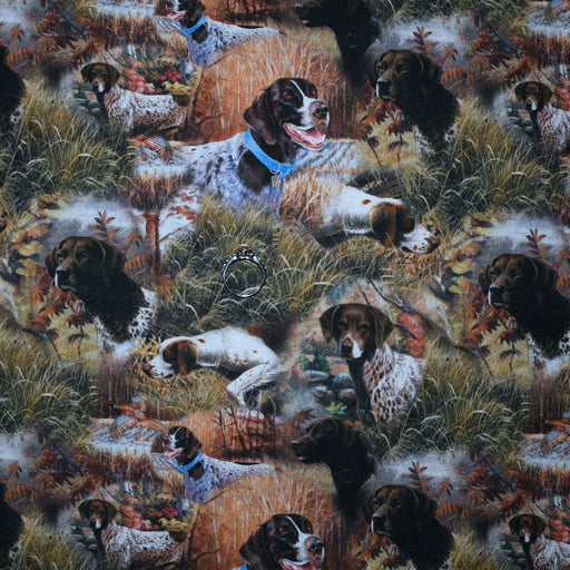 Cotton Fabric BTY Dog Hound Hunting Field Stream Scenic