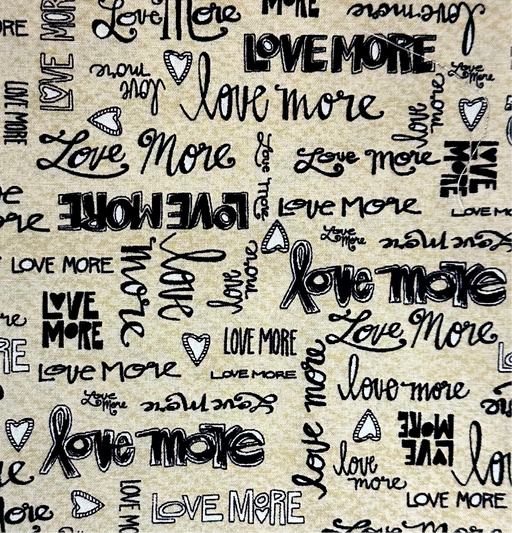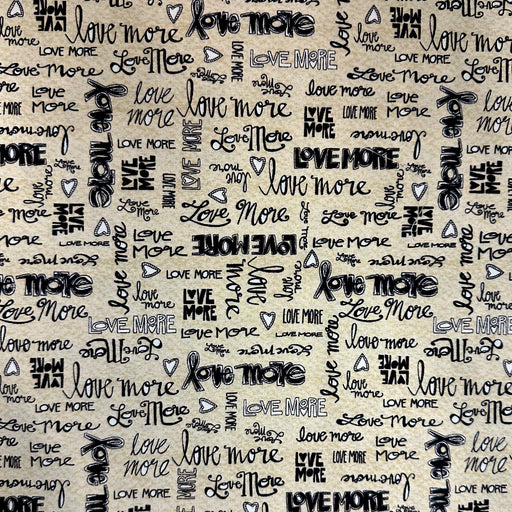Cotton Fabric BTY Love More Words B&W Heart Romance