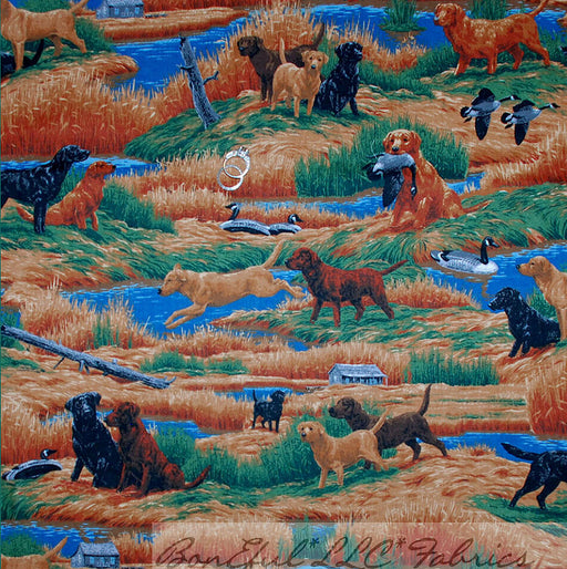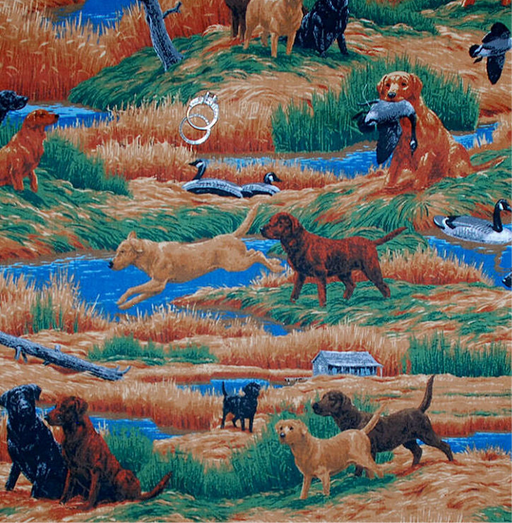 Cotton Fabric BTY Dog Labrador Retriever Hunting Water Scenic