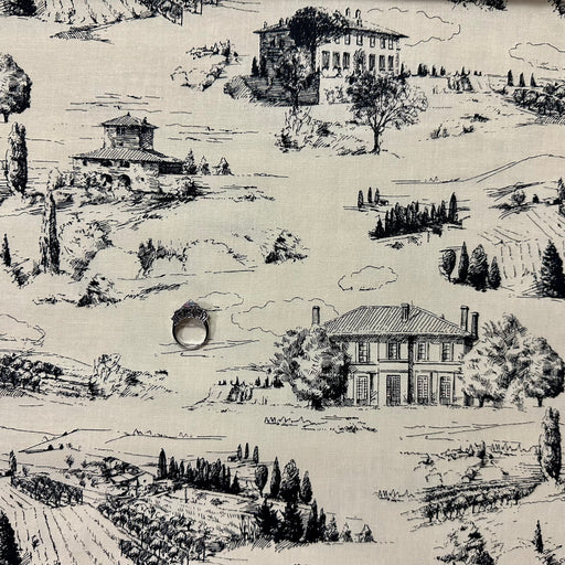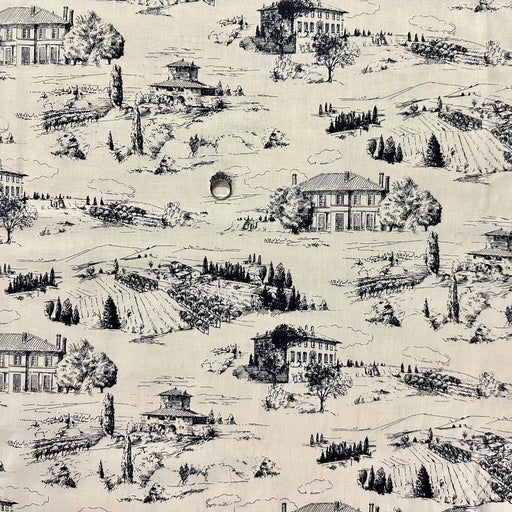 Cotton Fabric BTY Vineyard Country Homes Scenic Farm B&W