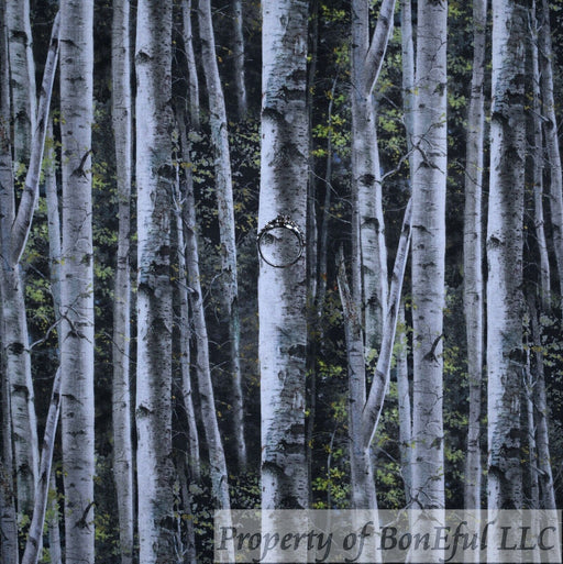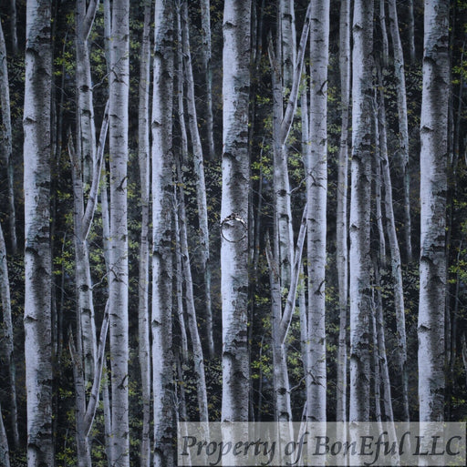 Cotton Fabric BTY Black B&W Tree White Birch Spring Summer Woods Scenic