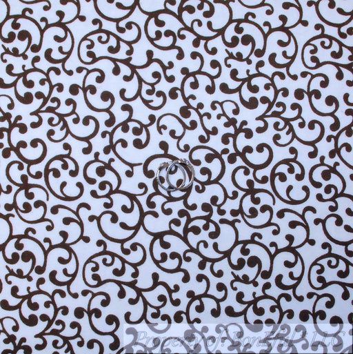 Flannel Fabric BTY Cream White Chocolate Brown Swirl Scroll