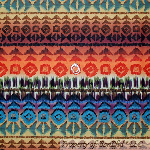 Cotton Fabric BTY Rainbow Aztec Southwestern Indian Cultural Color Stripe